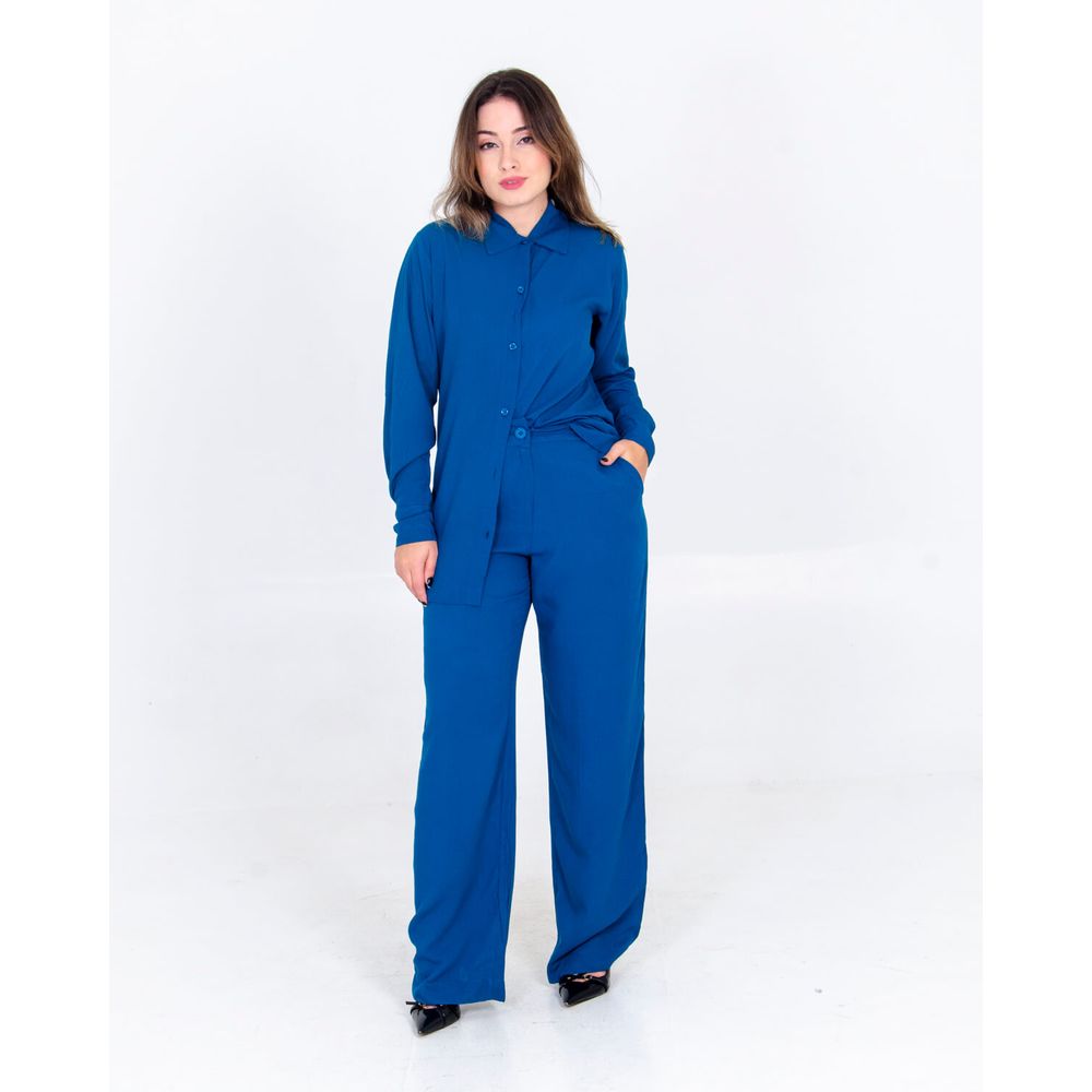Código Moda Mix: 388679 Conjunto Feminino - Camisa e Calça Pantalona Composição do Tecido: 100% viscose Marca: MI&CO Indicado para: Happy Hour Modelo: conjunto feminino em duas peças: Camisa llisa, manga longa, fecho frontal em botões; Calça lisa, pantalona, cós liso com fecho em ziper e botão e elástex nas costas.