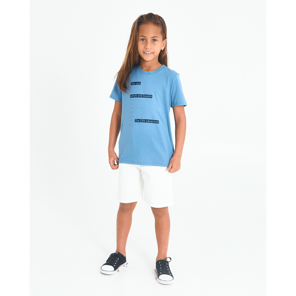 Marca:Carinhoso Indicado para: Passeio, Dia-a-Dia Modelo: conjunto masculino em duas peças: camisa estampada, mangas curtas, gola canoa; bermuda lisa, cós tradicional em botão e ziper e possui bolsos.