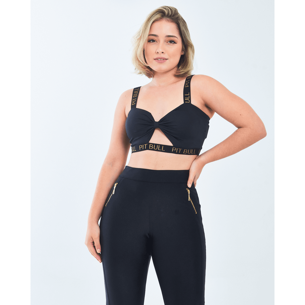Marca: Pit Bull Indicado para: Dia a Dia, Happy Hour, Festa. Modelo: Cropped feminina liso, decote em laço com detalhe vazado, possui bojo, alças tradicionais com nome da marca e barra em elástico.