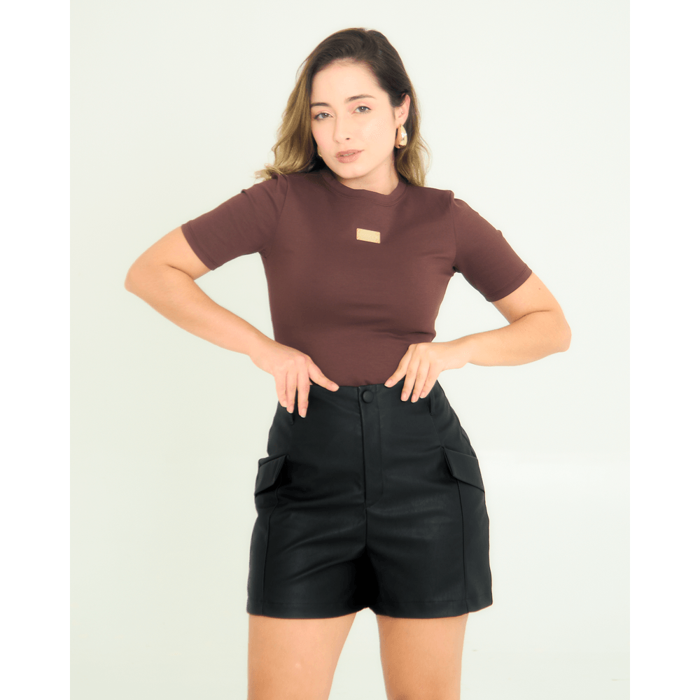 Marca: Dimy Indicada para: Casual, Happy hour Modelo: Short feminino, em couro sintético, cós liso , fecho em botão e zíper, barra lisa, possui bolsos na lateral, cintura alta.