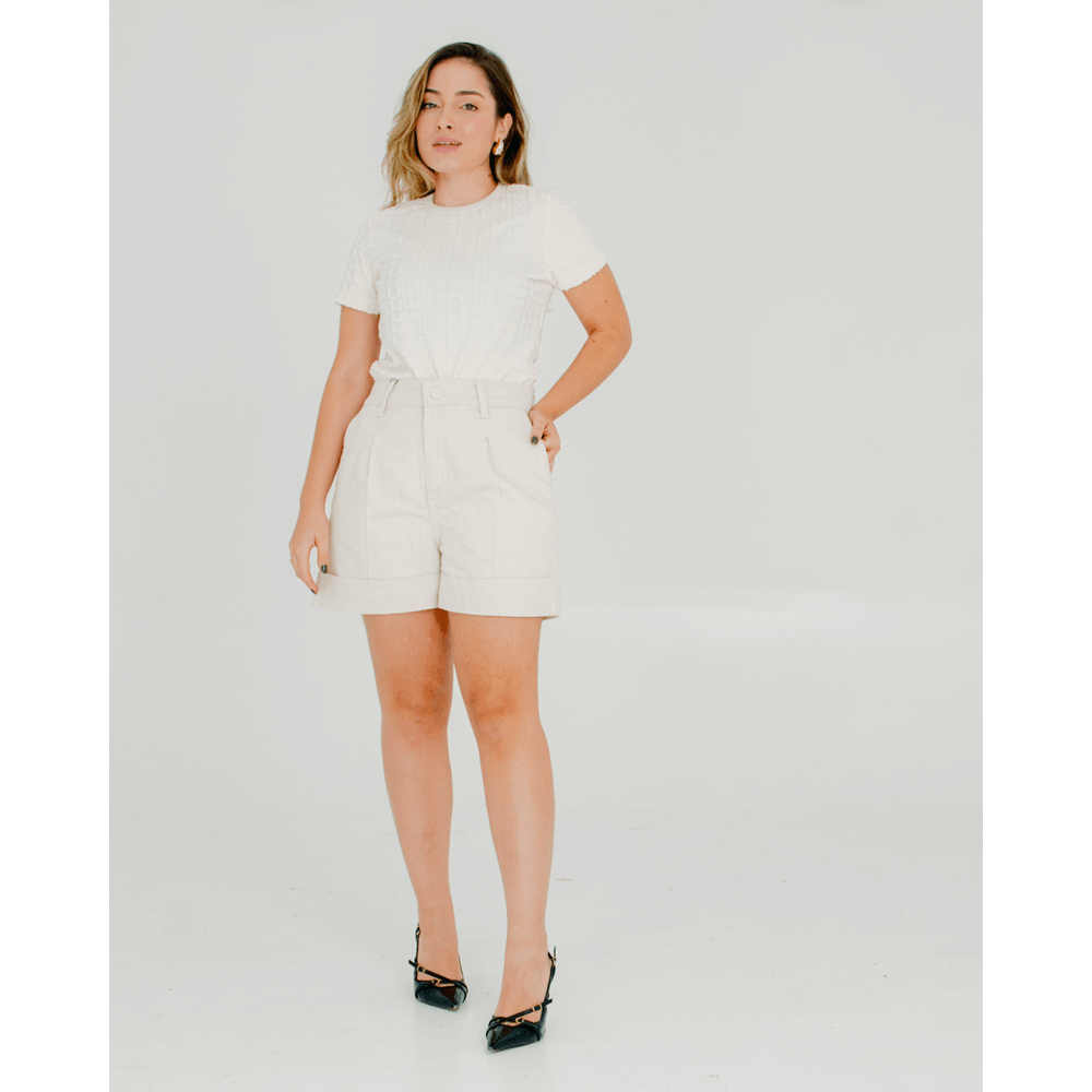 Código Moda Mix: 450758 Short Feminino - Cintura Alta - Lisa Composição do Tecido: 66% algodão, 23% viscose e 11% linho